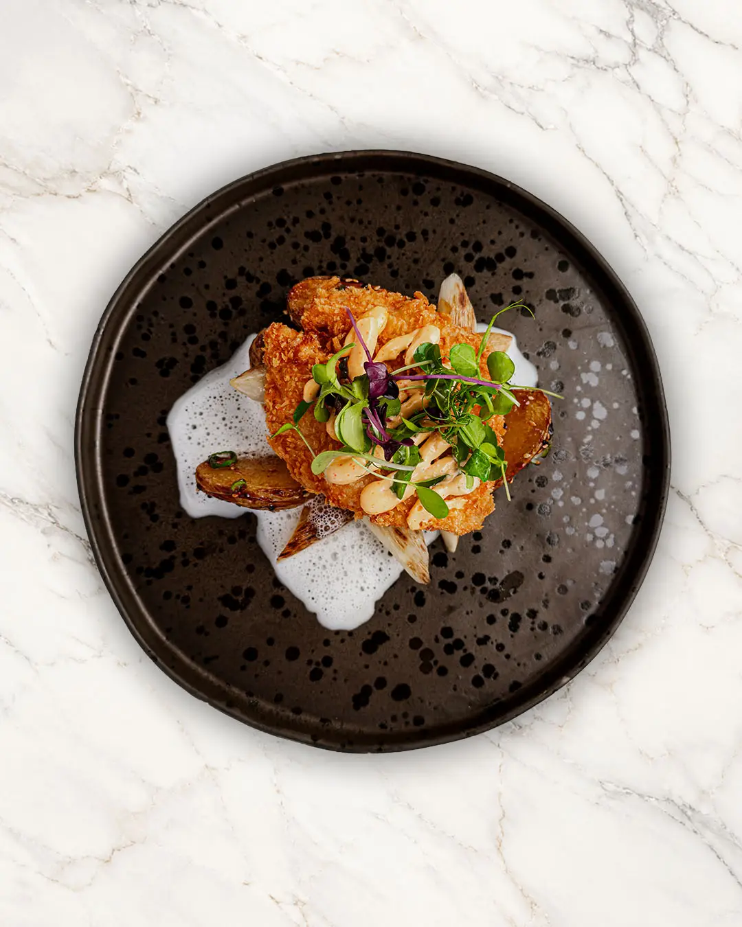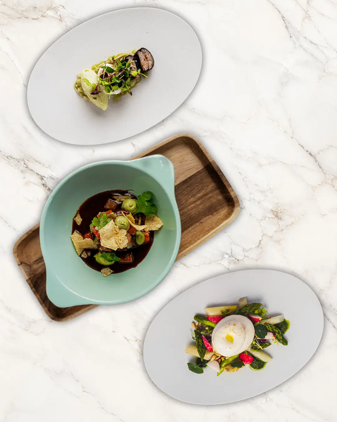 Zitronengras-Sauce • geschmorter Miso-Spargel • Sesam-Drillinge