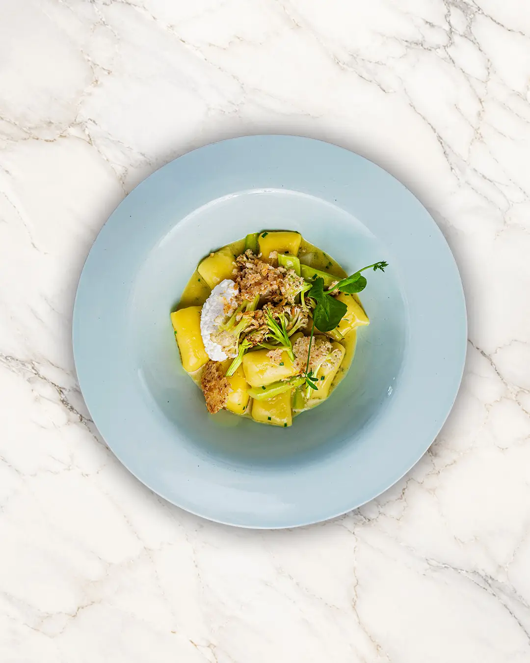 Vanille-Kräutersud • Zitronen-Pangrattato • Blumenkohl • Hüttenkäse